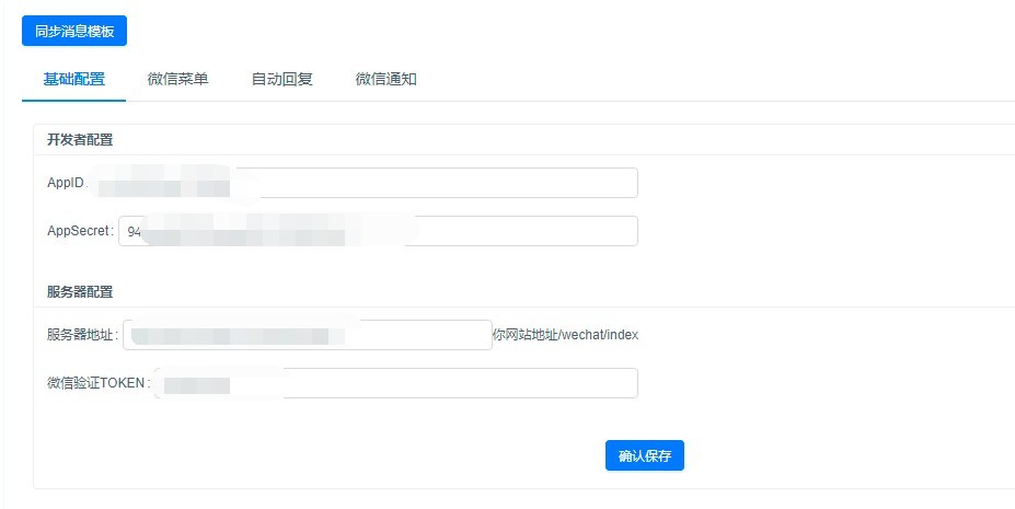 然后登录商城后台=》微信配置=》同步模板 提示同步成功后