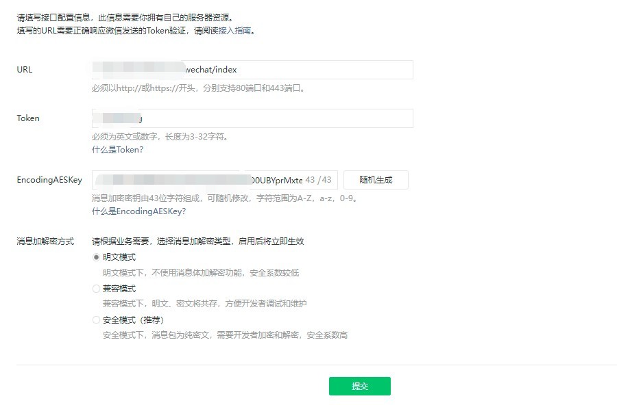 服务器地址填写{你的域名带有协议的比如http://shuka.cn}/wechat/index